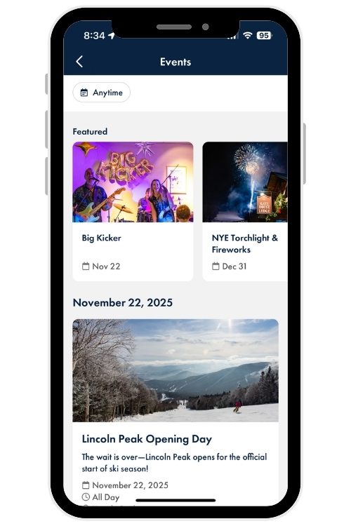 Skip the lines and take care of everything before you even click in. The Shop button on your home screen makes it easy to buy lift tickets, lessons or rentals right from your phone. No waiting, no fuss — just a smooth start to your day on the mountain.