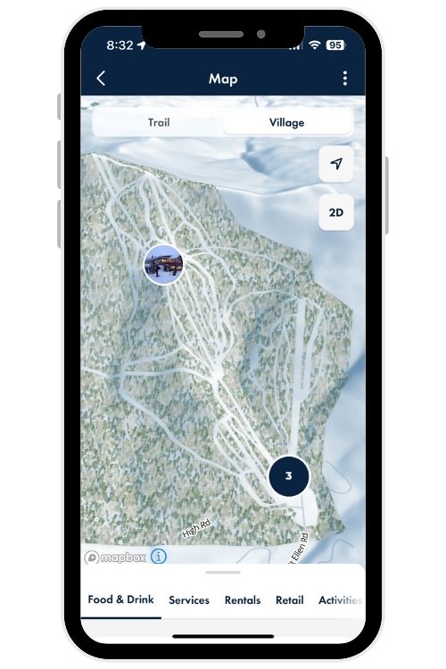 See where you’ve been and what’s next. The same great day-tracking you already know is back, plus 3D trail maps (coming soon) for both Lincoln Peak and Mt. Ellen. You can even explore the base area POI Map to find restaurants, restrooms, lessons, rentals and more — or order food online right from your phone.